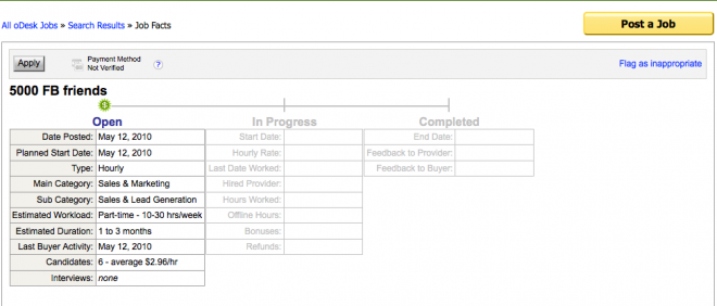 Nous avons cherché des freelancers capables de nous extraire les infos personnelles de 5000 comptes Facebook en France. Nos conditions: que des filles entre 13 et 16 ans, avec photos (regardez l’annonce sur le site odesk.com).
