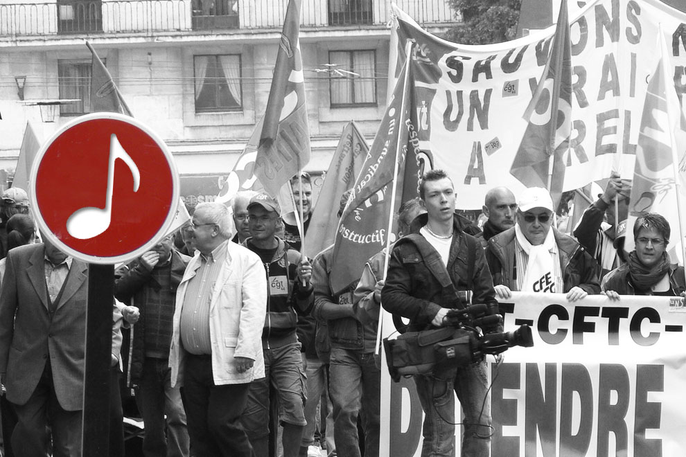 Dans ce marasme sonore, les récentes manifestations qui se sont déroulées en France ont vu émerger une chanson, diffusée massivement, au point de devenir d’une certaine façon un “tube”, une rengaine, qui pour une fois prend tout son sens sur les pavés.