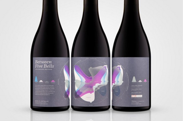 Between Five Bells, un vin australien, a sorti son cru 2011 dans de jolies bouteilles habillées de diverses infographies sur le processus de fabrication du vin suivant les cépages, l’évolution des températures au cours de la saison écoulée et ses influences sur la vigne, etc. Boire, visualiser, s’instruire, le trio gagnant.