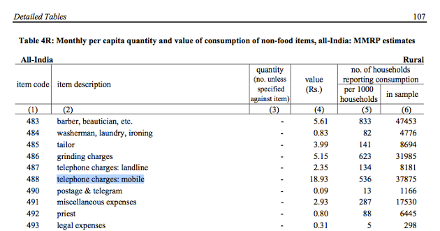Sur le site officiel du ministère de la statistique du gouvernement fédéral indien (Mospi), les données sur les biens de consommation (dont les téléphones mobiles) sont à retrouver dans l’étude “Indicateurs clefs des dépenses des ménages indiens 2009-2010″ (PDF), publiée en juillet 2011 par le National Sample Survey Office du ministère Indien de la statistique.